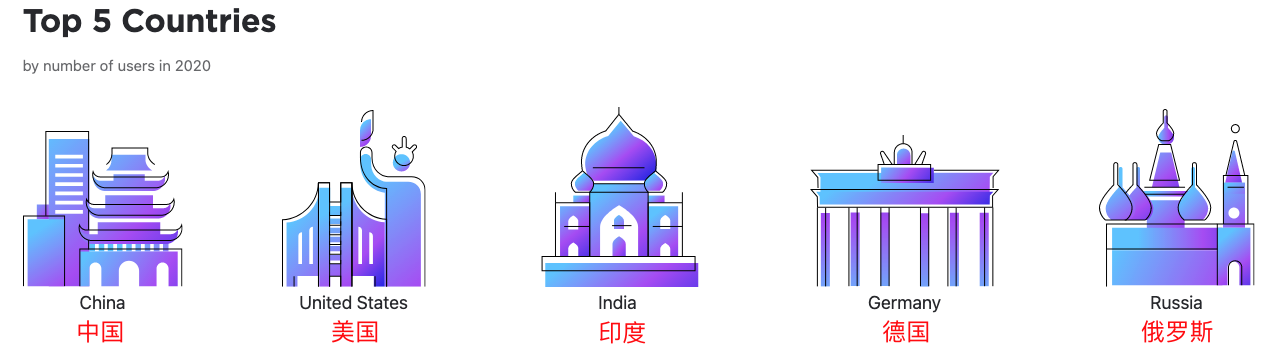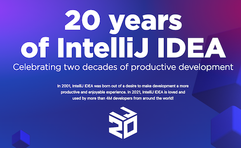 IntelliJ IDEA是JetBrains公司最为重要的产品,今年(2021年)是IntelliJ IDEA的20周年。 2020年IntelliJ IDEA的市场份额达到62%之多,远超第二名的Eclipse的20% `2001年,IntelliJ IDEA诞生,使得开发更富有成效和愉快的体验` `2021年,IntelliJ IDEA已受到全球400多万开发者的喜爱和使用!` #### 全球用户分布 从其官网公布的数据,其用户最多的5个国家分别为: 中国、美国、印度、德国和俄罗斯  ### IDEA20年各版本回顾 下面就通过其官网公布的截图来了解其每个版本的功能,体会下这20年IDEA工程师们的骄傲和自豪。 #### 2001年1月 IntelliJ IDEA的第一个版本发布,它是首批具有高级代码导航和集成代码重构功能的Java IDE之一。  --- #### 2002年6月/11月 发布2.6版本,支持当时最新的JDK 1.4。11月3.0版本正式发布  --- #### 2004年2月 JetBrains发布了IntelliJ IDEA 4.0,带有GUI设计器、集成的插件管理器、完整的语句功能,以及各种其他很酷的功能。  --- #### 2005年8月 JetBrains发布IntelliJ IDEA 5.0。这个新版本引入了全面的web开发支持(HTML、CSS、JavaScript),以及欢迎屏幕、快速定义查找、JBuilder/Eclipse项目导入和许多其他有用的特性。  --- #### 2006年2月 JetBrains发布了IntelliJ IDEA 5.1,并提供了业界最好的i18n支持。  --- #### 2007年10月 JetBrains发布了IntelliJ IDEA 7.0,具有全面的Spring和Hibernate支持、Web服务、Maven和ClearCase集成、Ruby和Groovy支持以及额外的生产力特性。  --- #### 2008年11月 IntelliJ IDEA 8引入了SQL支持、UML类图、JBoss Seam、FreeMarker、Velocity等。  --- #### 2009年3月/10月/12月 JetBrains开通官方Twitter账号,首次与用户实现互动。 同时,JetBrains推出了一个免费和开源的IntelliJ IDEA社区版。 IntelliJ IDEA 9带来了广泛的Java EE 6支持,优秀的PHP支持,以及更多。  --- #### 2010年12月 JetBrains通过发布IntelliJ IDEA 10开始了新的十年的发展,它集成了一个数据库表编辑器,支持Maven 3,添加了新的依赖关系图和新的POM重构,等等。  --- **由于篇幅原因 余下内容见第二篇文章:[IntelliJ IDEA 20年发展回顾(二)](https://libins.cn/detail/moduleName=suibi&articleId=a056b037c5e04af89c94c7d2c854b945) **