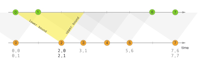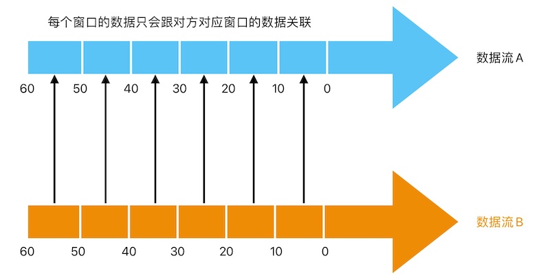 Flink双流JOIN其实可以理解为统计一定时间(在业务可接受的匹配时间范围)内两条流的匹配情况 #### 一、Window JOIN Flink基于一段时间的双流合并提供了一个窗口连接算子,可以定义时间窗口,并将两条流中共享同一个公共键的数据放在同一个窗口中进行匹配 Flink window join可分为: >滚动window join 滑动window join 会话window join 原理大同小异,以下以滚动window jion为例展开说明 ##### 示意图  ##### demo ```scala stream1.join(stream2) .where(<KeySelector>) .equalTo(<KeySelector>) .window(<WindowAssigner>) .apply(<JoinFunction>) // JoinFunction就是JOIN上之后需要处理的操作,可以根据业务场景进行个性化处理(重写原函数) @Override public String join(Object left, Object right){ return left + "---" + right; } ``` | 优点 | 缺点 | | ------------ | ------------ | | 处理逻辑简单 |落在同一个时间窗口范围内才能匹配,只能拿到匹配上的数据,类似inner join | Flink并**不建议使用这种方式关联**,因为按照窗口来固定关联边界,只要有一条流稍微有延迟,可能就匹配不上了,容错性很低。而且也无法拿到匹配不上的数据 #### 二、Interval JOIN 在大多数场景中,我们要处理的时间间隔可能并不是固定的,这时显然不应该用滚动窗口来处理,Flink提供了一种叫做间隔连接的合流操作——针对一条流的每条数据,开辟出其时间戳前后的一段时间间隔(**上界和下界**),看该间隔是否有来自另一条流的数据匹配 ##### 示意图  注:Interval join 目前仅支持 event time ##### demo ```java orangeStream .keyBy(<KeySelector>) .intervalJoin(greenStream.keyBy(<KeySelector>)) .between(Time.milliseconds(-2), Time.milliseconds(1)) .process (new ProcessJoinFunction<Integer, Integer, String>(){ @Override public void processElement(Integer left, Integer right, Context ctx, Collector<String> out) { out.collect(left + "," + right); } }); ``` | 优点 | 缺点 | | ------------ | ------------ | | 双流JOIN关联率大大提高</br> 可单独处理迟到数据(关联不上的数据)| 任务占用资源较多 |