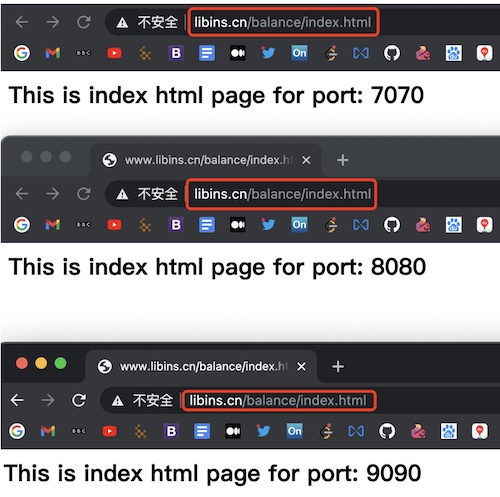 负载均衡(Load Balance),它在网络现有结构之上可以提供一种廉价、有效、透明的方法来扩展网络设备和服务器的带宽,并可以在一定程度上增加吞吐量、加强网络数据处理能力、提高网络的灵活性和可用性等。 用官网的话说,它充当着网络流中“交通指挥官”的角色 ####实现效果 在浏览器里输入www.libins.cn/balance/index.html,实现将请求均匀的发送到三台服务器。如下图所示: 为了方便实验,这里通过一台机器上3个不同的端口号来启动Tomcat应用,以此来模拟三台机器。  #### 配置步骤 使用Tomcat镜像,生成并启动三个容器,指定端口映射 ``` # 获取镜像 docker pull tomcat:8.0.35 # 根据镜像创建容器并启动,指定物理机端口映射为7070 docker run --name tomcat7070 -p 7070:8080 -v $PWD/test:/usr/local/tomcat/webapps/test -d tomcat:8.0.35 # 根据镜像创建容器并启动,指定物理机端口映射为8080 docker run --name tomcat8080 -p 8080:8080 -v $PWD/test:/usr/local/tomcat/webapps/test -d tomcat:8.0.35 # 根据镜像创建容器并启动,指定物理机端口映射为9090 docker run --name tomcat9090 -p 9090:8080 -v $PWD/test:/usr/local/tomcat/webapps/test -d tomcat:8.0.35 ``` 保证浏览器输入IP:端口,能够看到Tomcat的启动成功页面,如下图  分别在三台Tomcat服务器上创建HTML页面 ``` # 在7070机器上创建 docker exec -it tomcat7070 /bin/bash cd webapps mkdir balance cd balance echo "<h2>This is index html page for port: 7070</h2>" >> index.html exit # 在8080机器上创建 docker exec -it tomcat8080 /bin/bash cd webapps mkdir balance cd balance echo "<h2>This is index html page for port: 8080</h2>" >> index.html exit # 在9090机器上创建 docker exec -it tomcat9090 /bin/bash cd webapps mkdir balance cd balance echo "<h2>This is index html page for port: 9090</h2>" >> index.html exit ``` ##### 配置Nginx请求转发 修改Nginx的配置文件 ``` cd /usr/local/nginx/conf vim nginx.conf ``` 在HTTP全局块增加一个server块,并增加主机列表 ``` upstream myserver{ server 192.168.1.6:7070 weight=1; server 192.168.1.6:8080 weight=1; server 192.168.1.6:9090 weight=1; } ``` 修改HTTP块下面的server块内容 ``` # 配置server_name的值为Tomcat服务所在机器IP listen 80; server_name 192.168.1.6; ``` 修改server块下面的location 块的转发路径和端口 ``` location / { proxy_pass http://myserver; root html; index index.html index.htm; } ``` 重启Nginx服务并查看效果 ``` cd /usr/local/nginx sbin/nginx -s stop # 启动 sbin/nginx ``` 浏览器输入www.libins.cn/balance/index.html测试