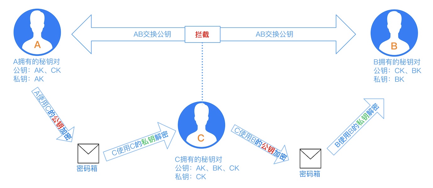 本文介绍对称加密与非对称加密区别,以及中间人攻击的原理 #### 对称加密及不足 对称加密的原理可参考下图:  如图,A和B先通过安全信道交换秘钥,这样A、B均有对方密码箱(为了方便理解,这里使用密码箱比喻)的钥匙。 当A给B发送密码箱时,A先使用A的秘钥进行加密,B收到后,由于B已经有A的钥匙,直接打开(解密)就能看到A发送的信息。如下图:  同理,当B发消息给A也是相同的流程。 这种打开密码箱和关闭密码箱使用的是相同钥匙(AK)的加密方式就是对称加密。 这种通讯方式看似没什么问题。然而,现实世界中,互联网是一个不安全的渠道。数据流可以被窃听,甚至在传输过程中被修改。因此`不可能通过互联网建立安全信道进行秘钥交换`。 所以,非对称加密技术就是为了解决这个痛点而开发。 --- #### 非对称加密(公钥加密) 非对称加密可以理解为一个密码箱有两把钥匙:一把是公钥,一把是私钥。 **`公钥只能用于锁定保险箱`** **`私钥只能用于解锁保险箱`** 任何人只要有我的公钥,都可以把我的密码箱锁定。一旦锁定,就只有我自己用私钥才能解锁,任何人都解不开。 因此,公钥可以告诉任何人,但是私钥必须保密。这两把钥匙就是`公私秘钥对`,在数学上关联。 下图展示了非对称加密的流程,我们假设A要给B发送密码箱。B收到后又给A回复的过程。  1、AB通过网络交换公钥,私钥留在各自本地 2、A使用B的公钥加密消息,并发送给B。 > 此时,窃听者可以截获A发给B的密文,但是无法解密,因为他没有B的私钥 3、B收到消息后,使用本地的私钥进行解密,从而知道A发送的内容 4、同理,B回复A时,使用A的公钥进行加密,A收到后再用本地自己的私钥进行解密 这种方案由于私钥在自己本地存储,没有通过网络进行交换。相比对称加密,极大减少了计算机通讯中的信息泄漏问题。 --- #### 中间人攻击 其实,细心的读者可能会发现非对称加密也不是万能的:由于公钥通过不安全的信道发送,这为`中间人攻击`提供了可能性。如下图所示:  1、C在AB交换公钥时,拦截A、B的公钥并保存,同时将自己的公钥(CK)发送给A、B。`让A、B误以为CK就是对方的公钥`。 2、此时A像B发送密码箱时,A使用的其实是C的公钥进行加密 3、C再次拦截A发过来的密码箱,由于使用的是自己的公钥加密的,可以使用自己的私钥进行解密,从而获取信息。 4、C读取完加密的信息后,再用已保存的B的公钥进行重新加密,并发送给B 5、B收到后再用自己的私钥进行解密,得到A发送的信息 请注意,`在此次攻击中,A、B没有发现任何表明他们被攻击的迹象`,这种攻击就叫中间人攻击。 --- **那么如何解决这种中间人攻击带来的问题**呢?业界比较主流的方案有如下几种: >公钥分发 信任网 离线信道 公钥基础设施PKI—证书颁发机构(CA) 其中`公钥基础设施`是世界上部署最广的加密方案,这也是下一节要分享的内容:[公钥基础设施与数字签名技术](https://libins.cn/detail/moduleName=suibi&articleId=4267711c2ef227ad0668d6268b3a9fce "公钥基础设施与数字签名技术") --- *参考文献:《区块链与数字金融革命》*